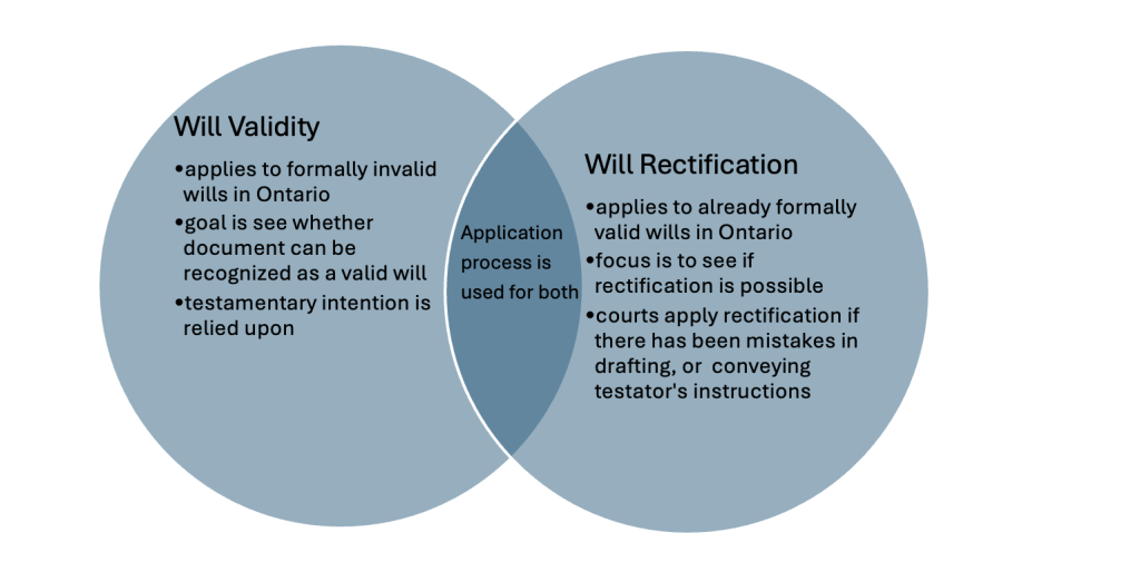 Ontario courts have a strict standard when it comes to rectifying wills, therefore only rectifying them in very clear and rare circumstances and must be satisfied that: